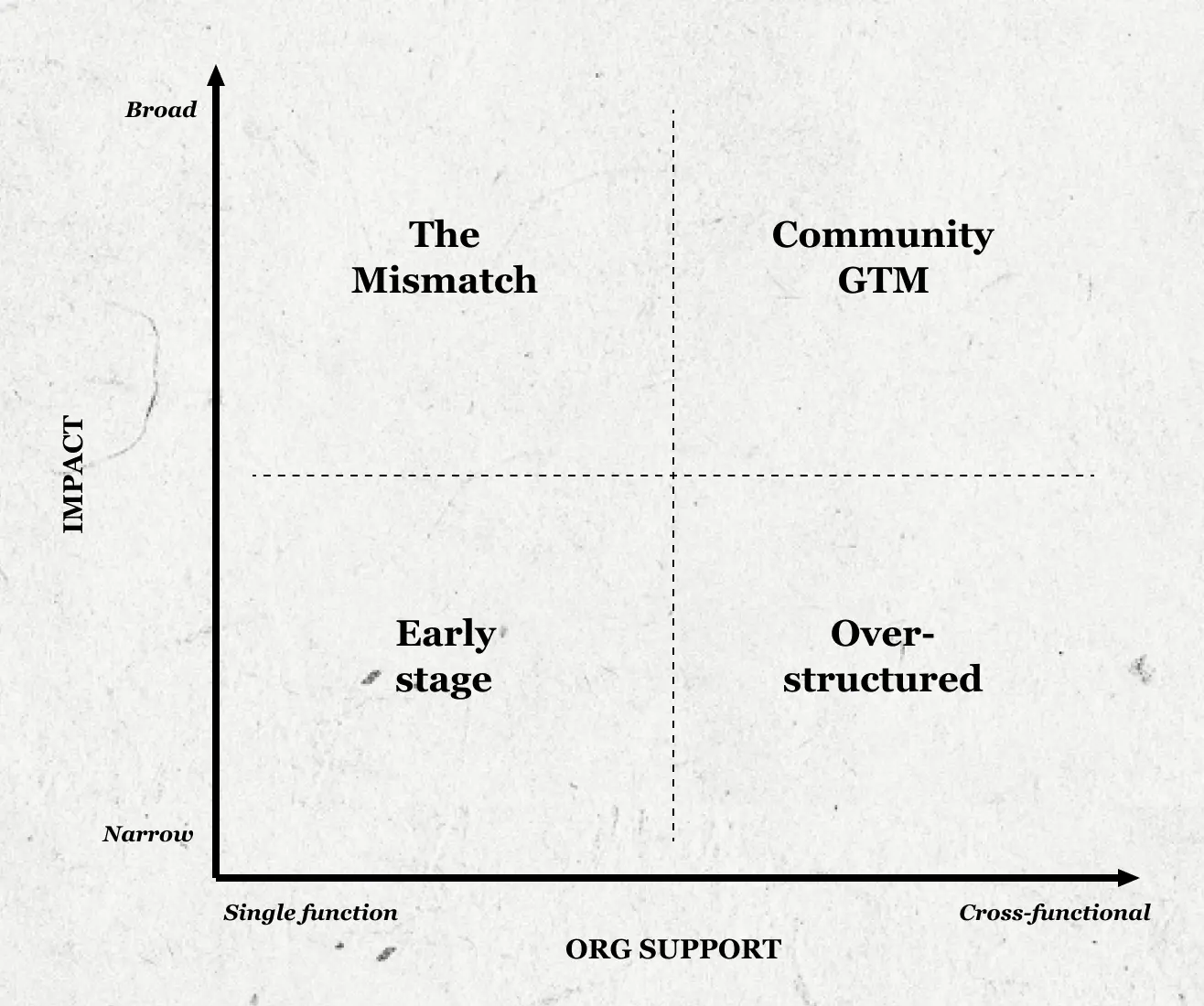But most organizations aren’t designed to operate around shared mechanisms. They’re designed around functions, each with their own goals and planning processes. Community cuts across those boundaries, but the structure around it does not. That’s why so many community teams end up stuck in a single function, even when their impact clearly isn’t.