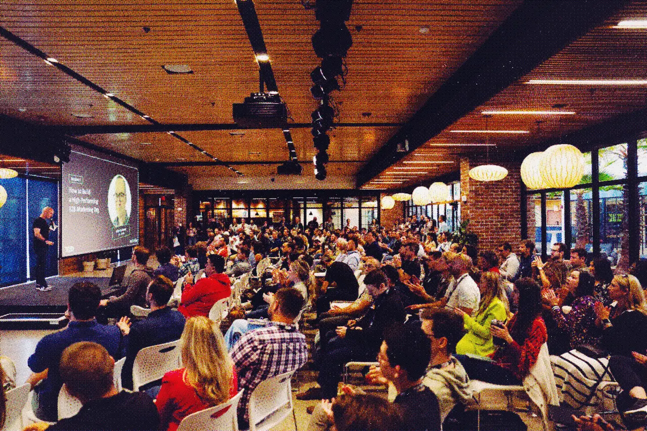 There are regular events including virtual sessions and webinars (which get around 500-1,000 signups [24] and around 1/3 of those turn up [26]), and increasingly, in-person meetups [6, 19]. These range from tactical deep-dives on specific marketing topics to broader strategic discussions with industry leaders [20]. Their first in-person event, "Drive," sold out 200 tickets in a day and led to plans for multiple in-person events per year [19].