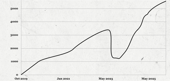 Now Exit Five operates with a lean team of six full-time employees. He did $800k in revenue running solo in 2023 [31], but by September 2024, they passed $200k revenue in a single month [29]. With the team in place, Dave expects to get to "$3 million to $5 million… in the next one to two years" [6].